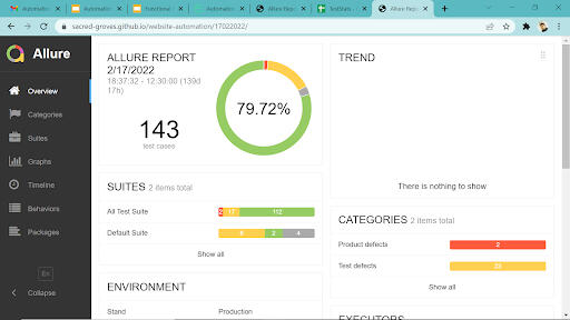 After running Automation scripts, Allure reports were used for generating very informative reports about the tests, and also hosted these reports over the web (using automatic hosting with the help of GitHub) for the interested parties to see.